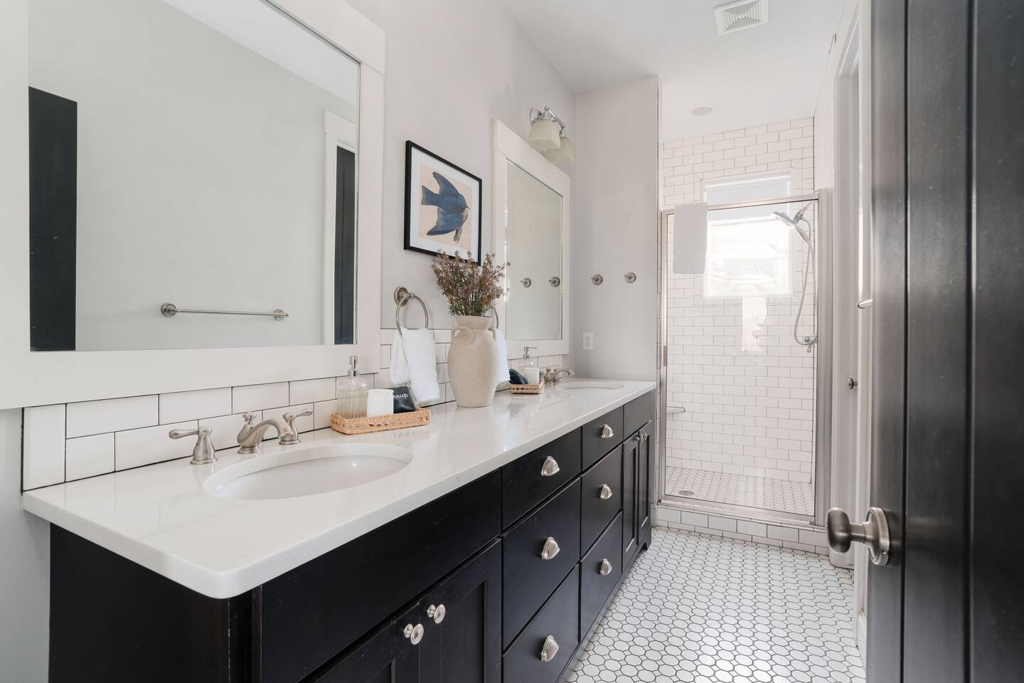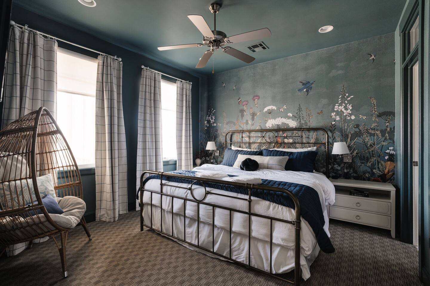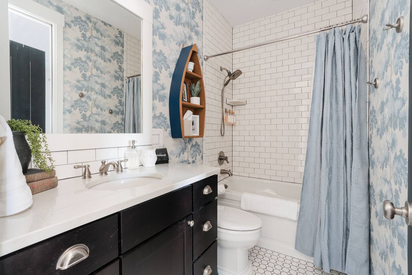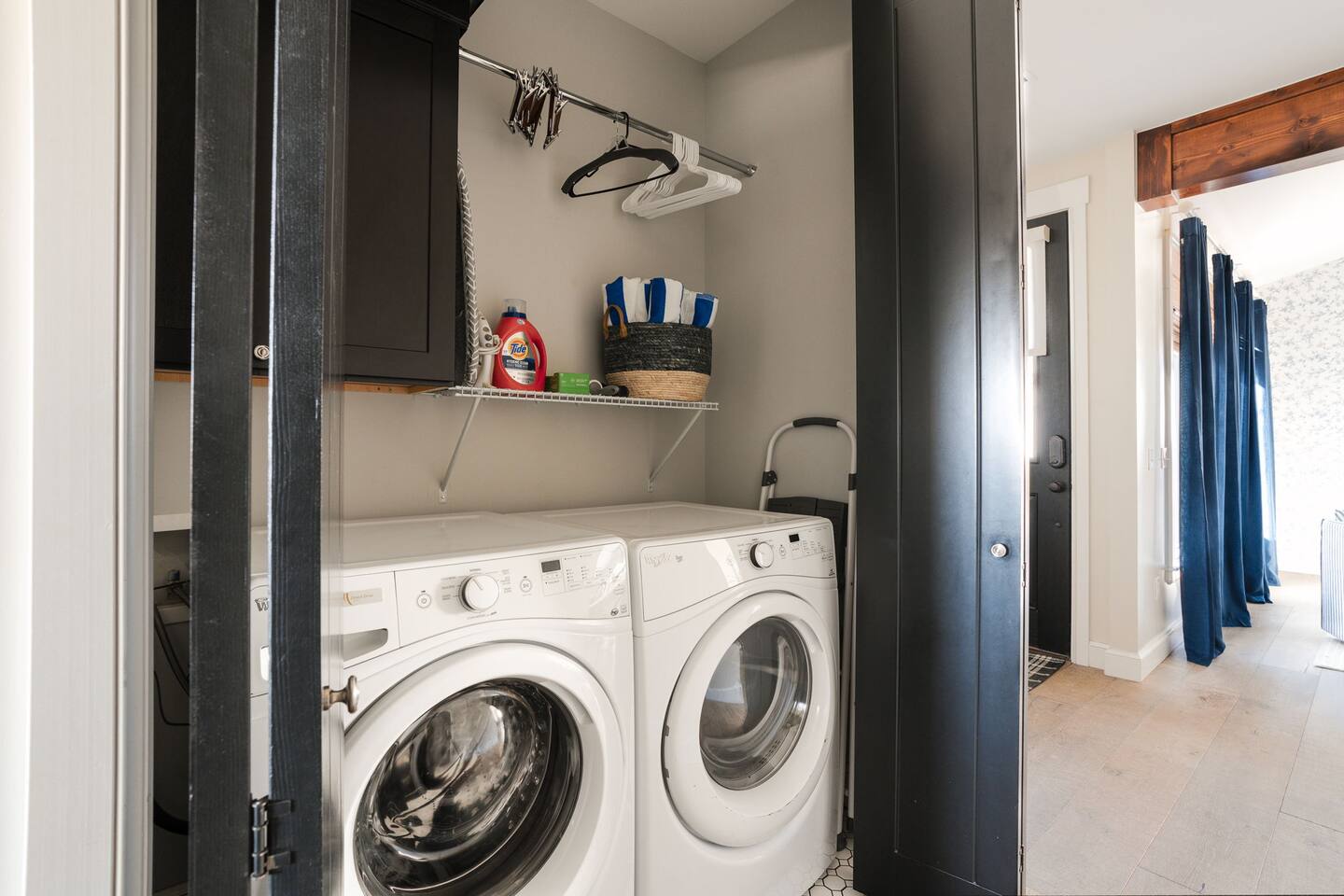 Primary Suite: The large primary bedroom has a king bed, TV on the wall, ceiling fan, bedside table fan, sound machine and room-darkening curtains. There's an en-suite bathroom with a shower and 2 sinks. There's also a closet off the bedroom that includes a pack-n-play (but you'll need to bring your own pack-n-play sheet), a safe, and a dresser. Second Bedroom: This bedroom includes a queen bed plus a twin bed, a ceiling fan, bedside table fan, sound machine, and room-darkening curtains . There's an attached closet that has a dresser inside as well as toys and books for little ones. The second bathroom is off the hallway, but also connects to the second bedroom by a pocket door. Living room Sofa Bed: The blue sofa is a memory foam queen pull out bed. Accessibility Note: Our home is not ADA compliant. However, it may be a good option for guests with limited mobility since it is a single-level unit with no stairs between our parking spot and the front door. Please note: there is a small threshold step at the entry and a threshold step to enter the primary suite shower.
